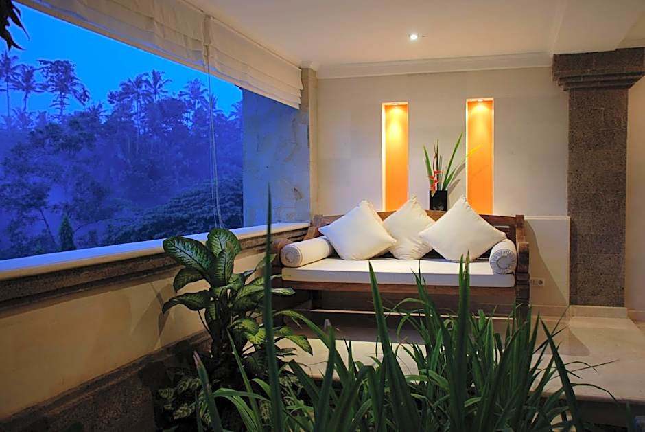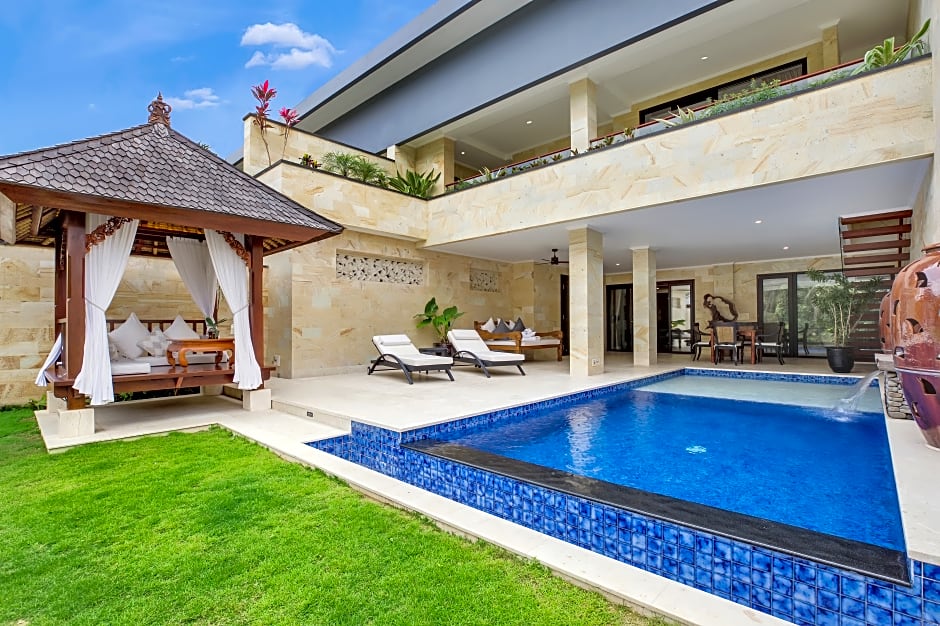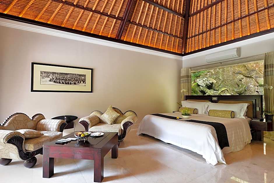 Features a living room with a seating area and a private Balinese-style pavilion.