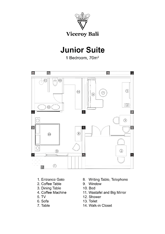 Junior Suite - No Private pool and No View is 753 square feet and includes a king-size bed 150-183 width plus living room, desk, and cable tv.